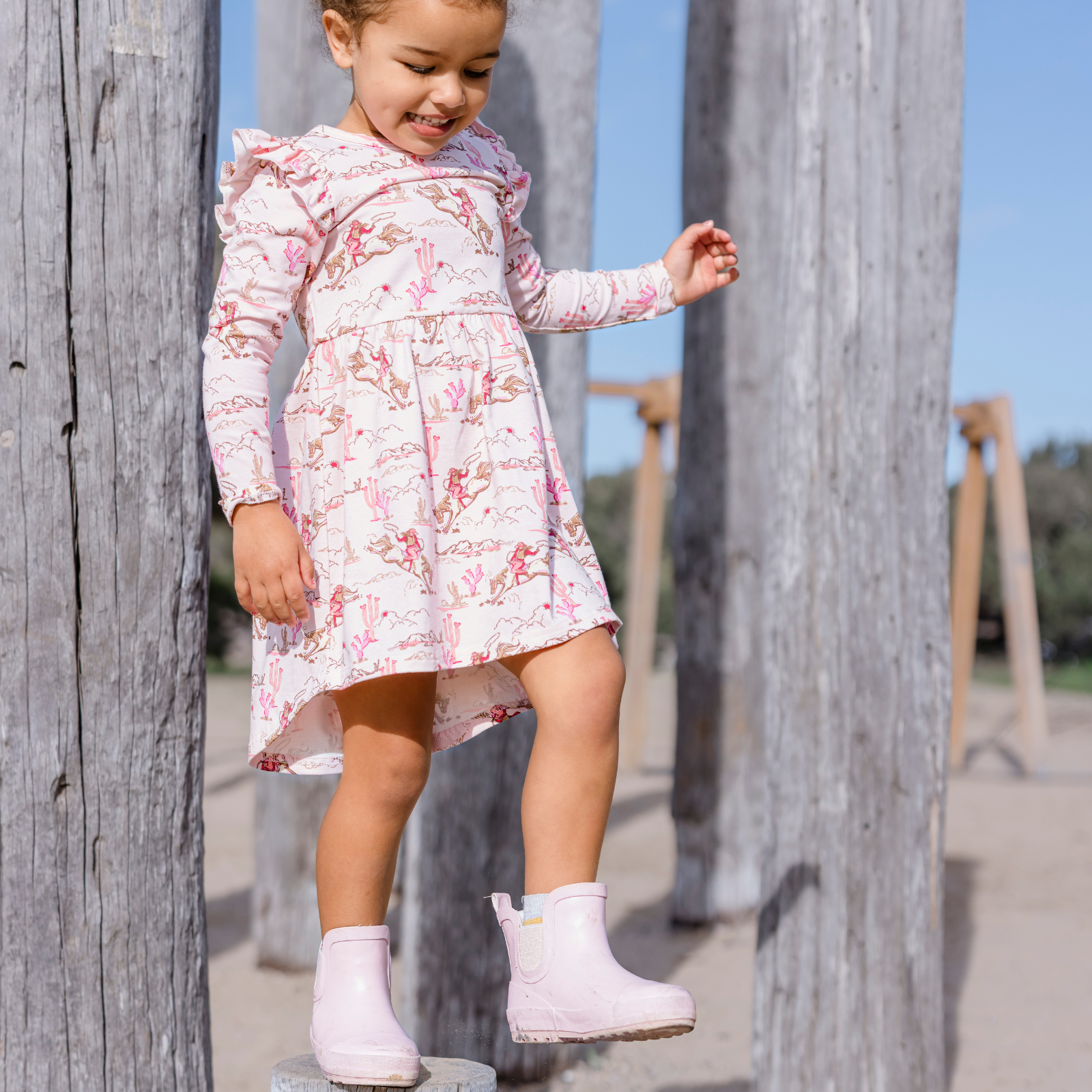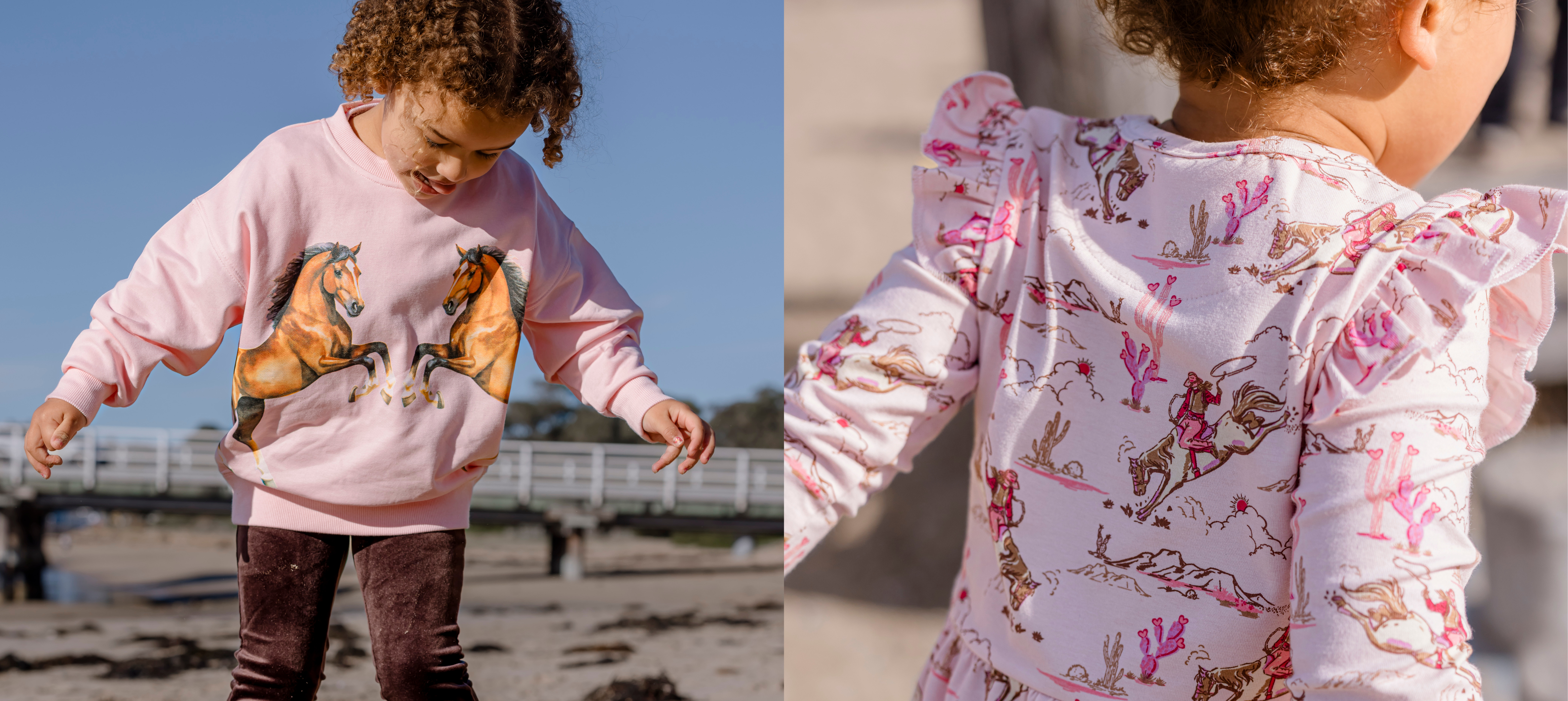 Big imaginations, dusty knees and little cowboys and cowgirls ready to ride into the day. Easy layers, bold prints and outfits that keep up from first adventure to home-time.