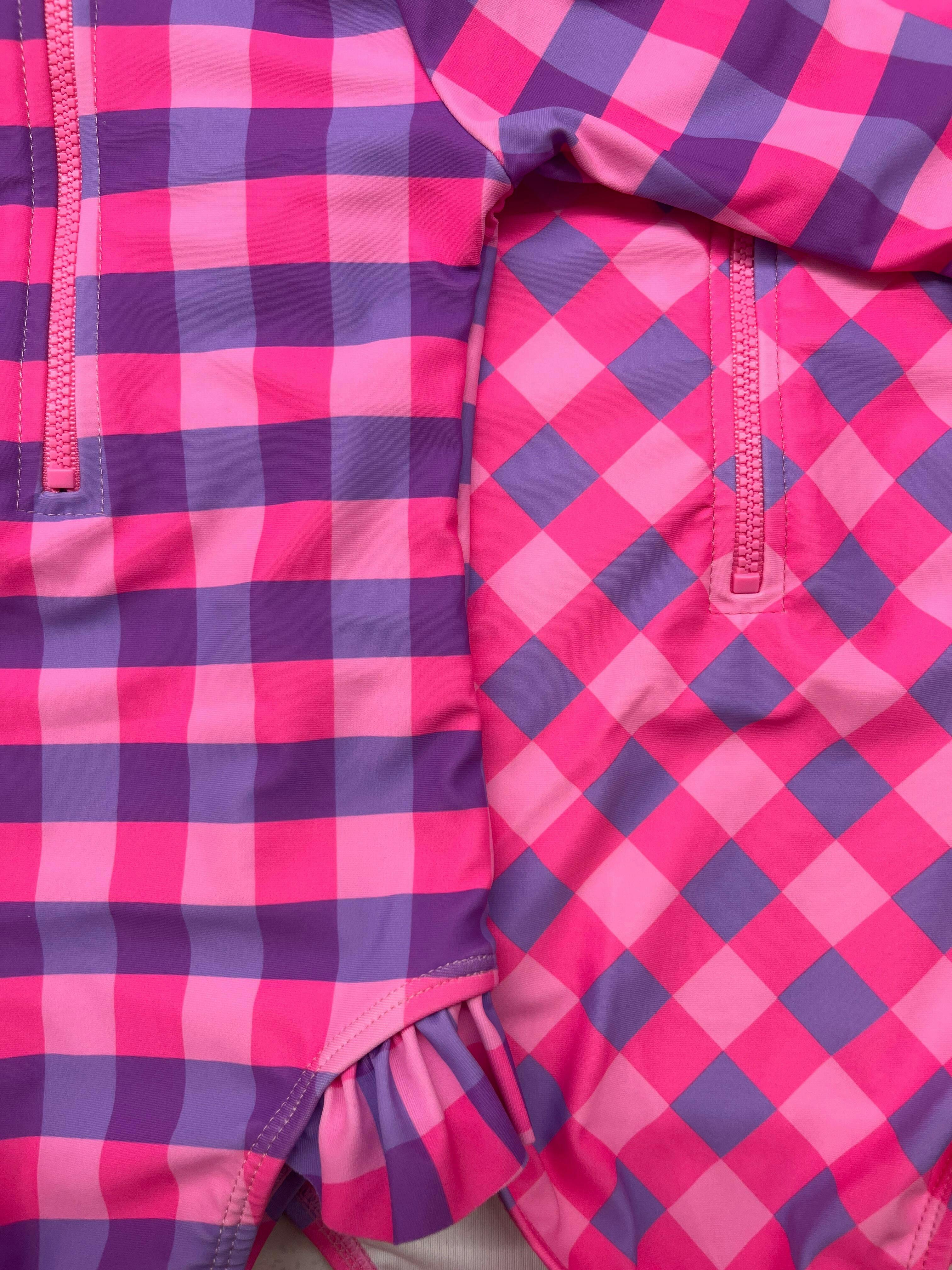 Lilac Check Long Sleeve Swimsuit